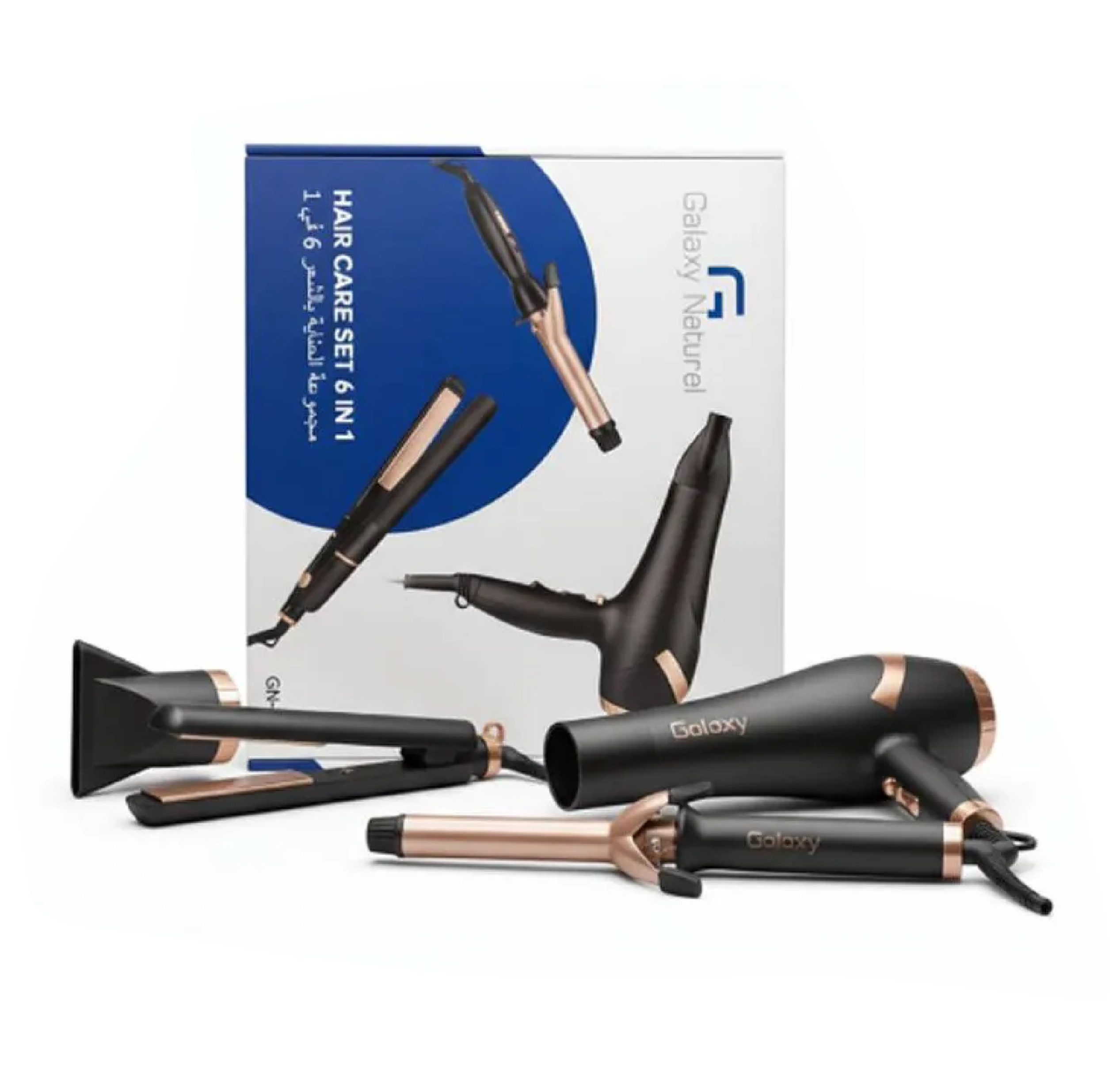 • Caractéristiques Les coffrets Galaxy Naturel sont équipés d’un sèche-cheveux professionnel de 2000W, offrant un séchage rapide et efficace, accessoires interchangeables faciles à fixer, Convient pour : lisser, boucler, sécher et coiffer, Design ergonomique pour une prise en main confortable, Revêtement protecteur (souvent céramique pour les cheveux), Protection contre la surchauffe, Utilisation simple et rapide.